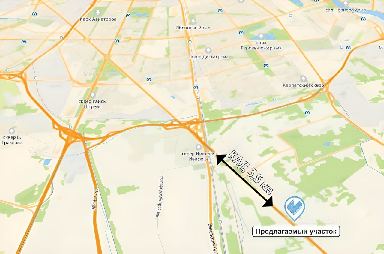 - Земельный участок находится 3,5 км до КАД, на въезде в город.