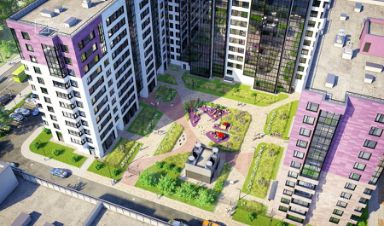 При благоустройстве дворов комплекса применяется новый подход к организации внутренней территории. Это современные решения, направленные на создание комфортной, тихой и безопасной среды для всех жильцов. Сердцем комплекса станет общественное пространство с тематическими игровыми площадками для детей разных возрастов, зонами тренировок и командных игр. При этом перед каждым корпусом будет спокойный, тихий, уютный двор, свободный от машин. Запланирован свой детский сад с отдельным двором и площадками для прогулок и физкультуры.