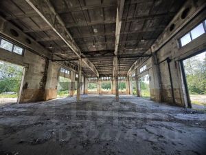 На площадке здания заправки и навесы под реставрацию (фундамент живой, стены и крыша требуют ремонта).
