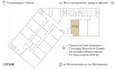 Описание помещения: Вход в помещение рядом с центральным входом в комплекс, а выход напротив остановки и транспортной развязки.