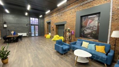 Офисный центр Шагал занимает два этажа 3-этажного кирпичного здания - одного из бывших заводских корпусов Выборгской бумагопрядильни Г. Смалла, построенных в конце XIX - начале XX века.