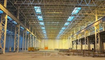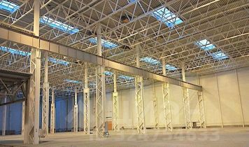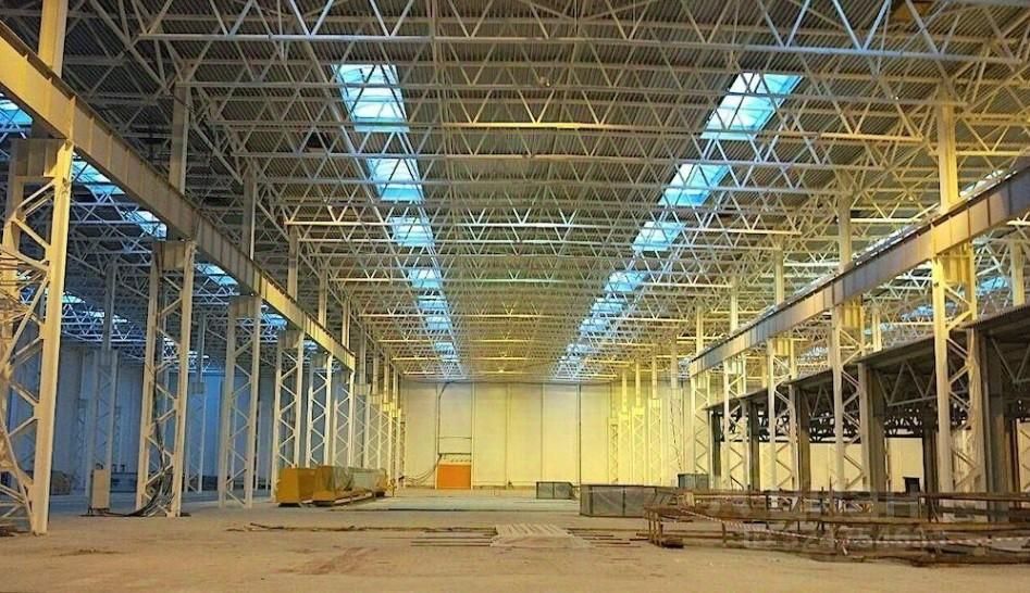 Высота производственного здания до нижнего пояса ферм составляет 18 м.