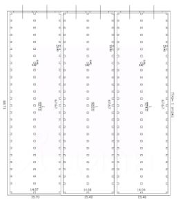 Каждое помещения прямоугольной формы, ширина 14 метров, длина 66 метров, высота 6 метров.