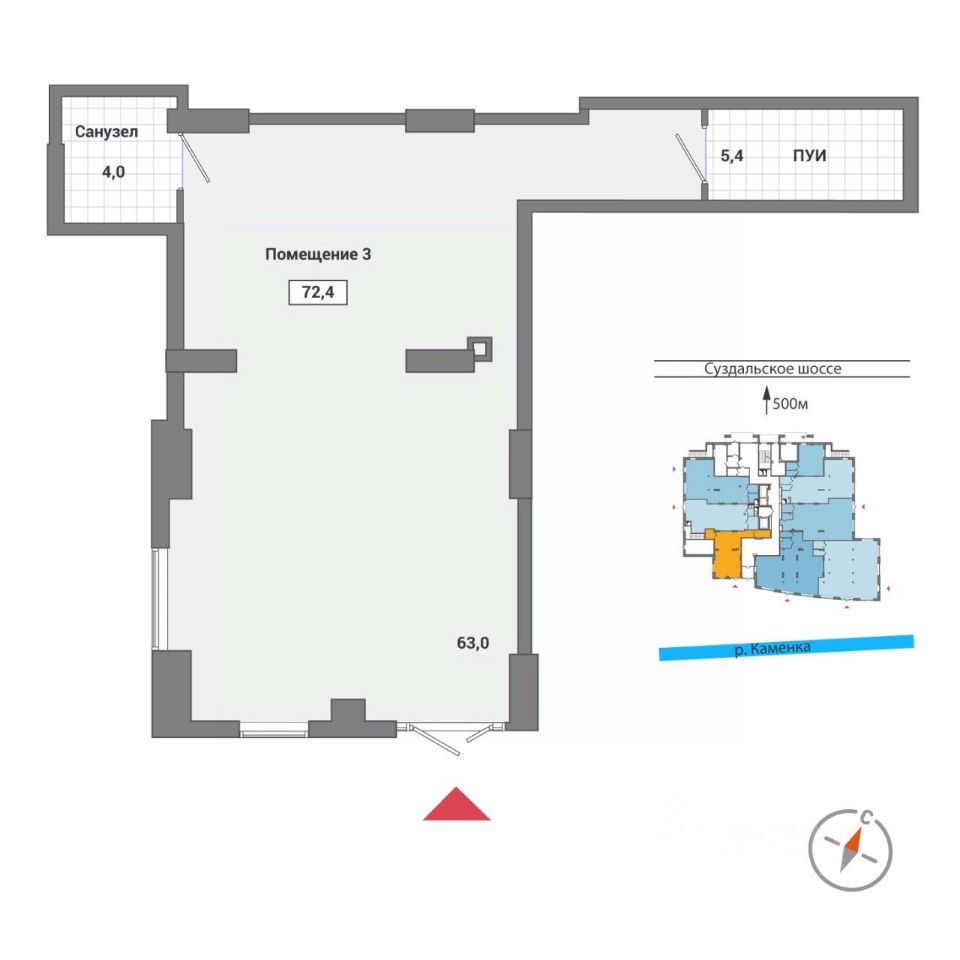 Описание помещения: Помещение имеет 1 вход.