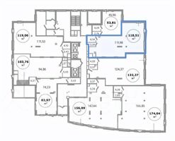 Описание помещения: Блок состоит из нескольких помещений - 119.3 м2, 110.6 м2, 148.2 м2, 173.7 м2.