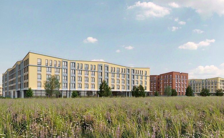 Малоэтажный квартал, состоящий из жилых домов высотой 5 этажей. Фасады выполнены в теплых оттенках бежевого и терракотового спектра. Парапеты домов имеют уклоны, фасады украшают декоративные пояса, а под окнами располагается рустовка.
