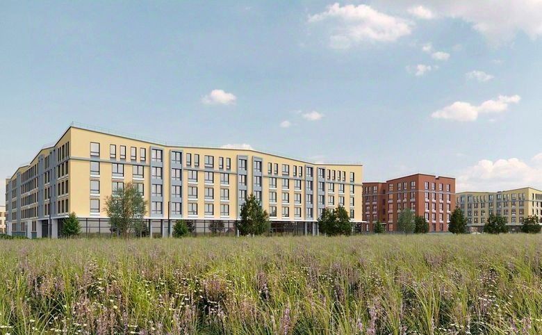 Малоэтажный квартал, состоящий из жилых домов высотой 5 этажей. Фасады выполнены в теплых оттенках бежевого и терракотового спектра. Парапеты домов имеют уклоны, фасады украшают декоративные пояса, а под окнами располагается рустовка.