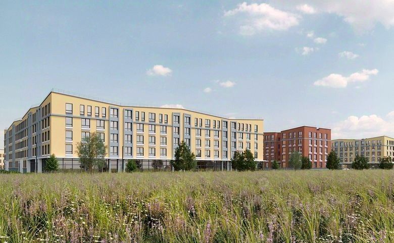 Малоэтажный квартал, состоящий из жилых домов высотой 5 этажей. Фасады выполнены в теплых оттенках бежевого и терракотового спектра. Парапеты домов имеют уклоны, фасады украшают декоративные пояса, а под окнами располагается рустовка.