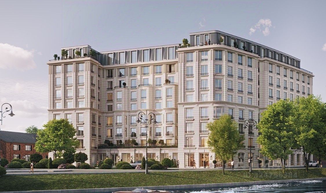 Жилой комплекс выполнен в монолитной технологии с вентилируемыми фасадами, которые облицованы декоративным камнем. Оформление проекта гармонично вписывается в исторический облик района. Комплекс расположен на берегу реки, в историческом районе города.