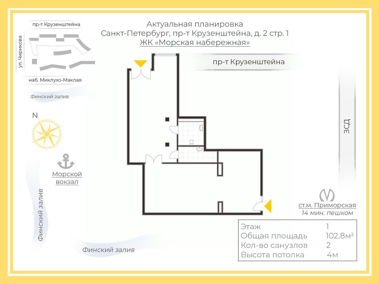 Арт. 127467042 Продается отличное помещение В Новом ЖК Бизнес класса "Морская набережная" 1 очередь дом сдан.
