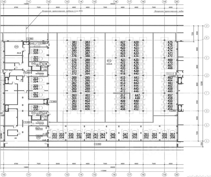 Всего в подземном паркинге 315 машино-мест, обозначаемых двойной нумерацией.