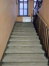 Лучше всего помещение подойдет под организацию офиса. Высокие потолки (3,4м), много окон, наличие мокрых зон для организации кухни и санузлов. Лестницы в парадной пологие и широкие. Лифта нет.