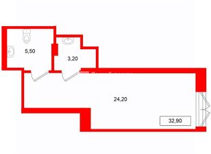 Помещение находится на 1 этаже, общая площадь: 32,9 кв.м. Один вход.