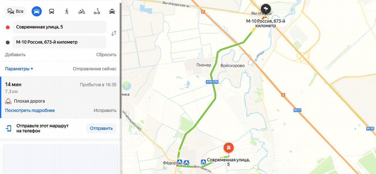 7 км до М10 (15 минут) / 18км до М11 (25 минут) / 28 км до КАД (40 минут)