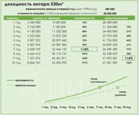 площадь ангара - 530м² ширина 12м / длинна 42м / высота 4,8-6м (односкатная крыша)
