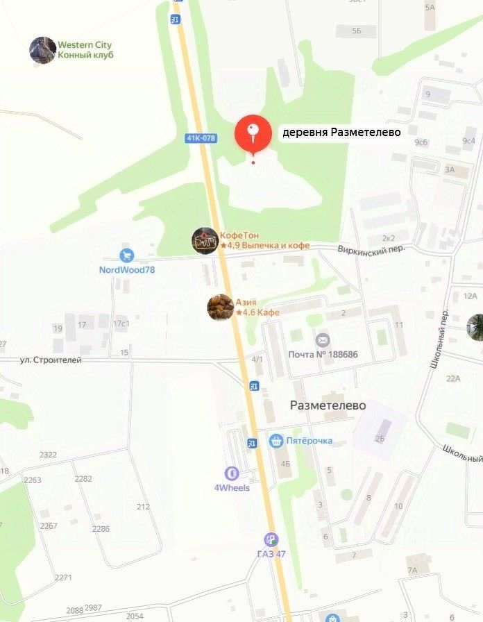 Есть вся необходимая инфраструктура, Остановки общественного транспорта, Школа, детский сад, поликлиника, все магазины в деревне Разметелево.