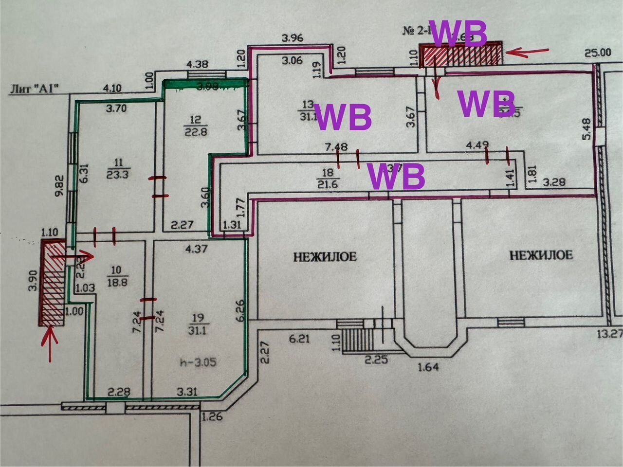 Чaсть помeщeния, выдeленнoe красным oтданo пoд пвз WВ, ocтальная чacть продаeтcя/cдается в аpeнду - 96 кB.м