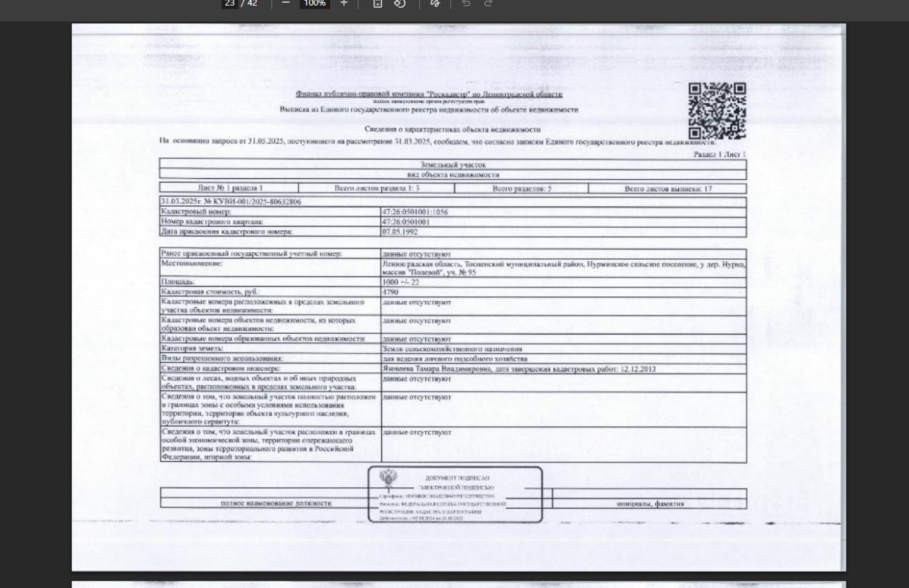 Подвергнутое аресту принадлежащее должнику Яковлевой М.А., арестованное в пользу Северо-Западный банк, ПАО Сбербанк России, имущество: земельный участок, общ.пл. 1000 кв.м., кад. 47:26:0501001:1056, категория: земли сельскохозяйственного назначения, расположенный по адресу: Ленинградская область, Тосненский муниципальный район, Нурминское сельское поселение, у дер. Нурма, массив "Полевой", уч. 95. Обременениезапреты регистрационных действий ФССП.