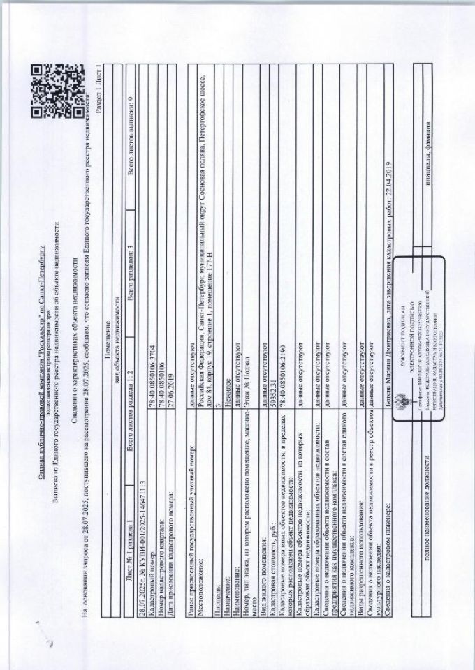 Нежилое помещение 177-Н, расположенные по адресу: Санкт-Петербург, Сосновая Поляна, Петергофское шоссе, д. 84, корп. 19, стр. 1общ. пл. 3 кв.м. кад 78:40:0850106:3704