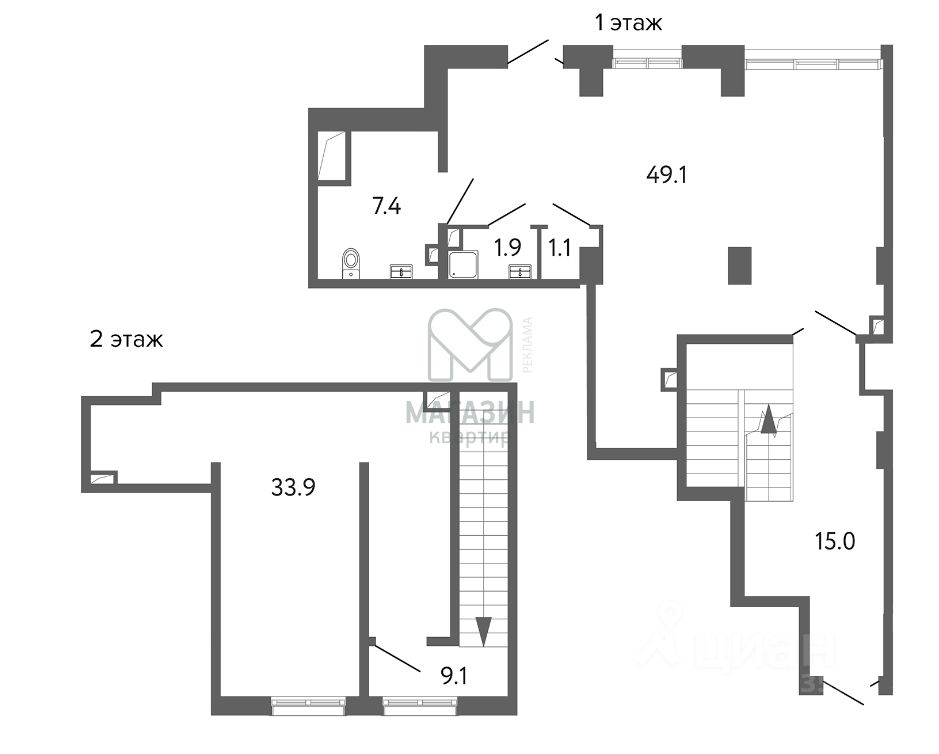 Помещение расположено на 1 и 2 этаже.