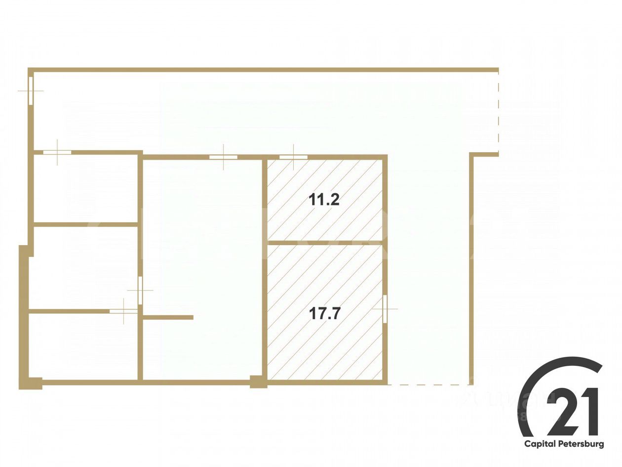 Возможно объединение двух помещений в одно.