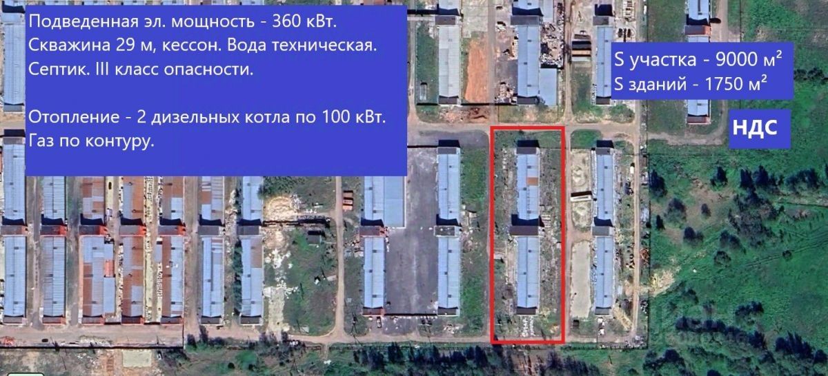 Подведенная эл. мощность - 360 кВт. Скважина 29 м, кессон. Вода техническая. Септик.