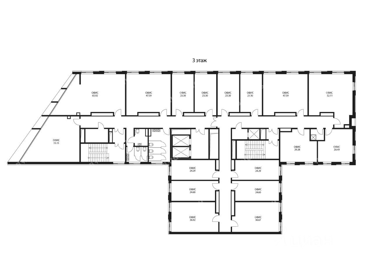 Офисное помещение 590.7 кв. м в бизнес-центре "Арт Плаза". Прямая продажа, без комиссии. Объект на стадии активного строительства, готовность ко въезду уточняется по запросу.