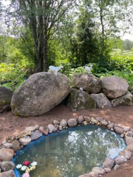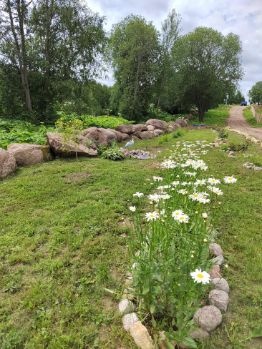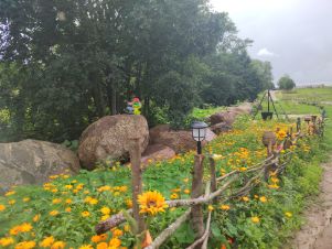 На участке есть сад, пруд и множество красивейших цветов и кустарников.