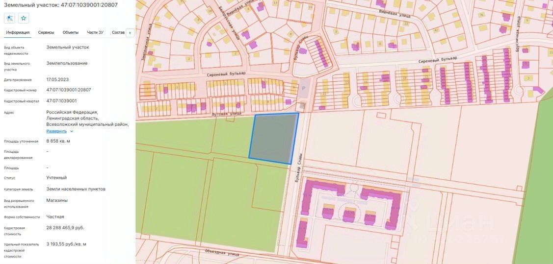 - Кадастровый номер: 47:07:1039001:20807.