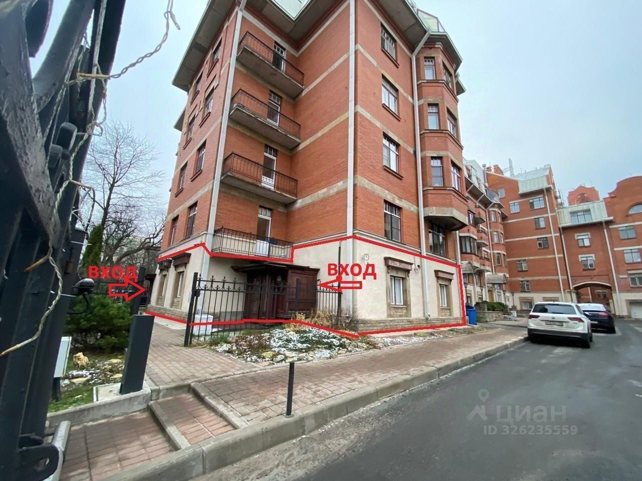 Два отдельных входа с фасада и один со двора.