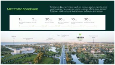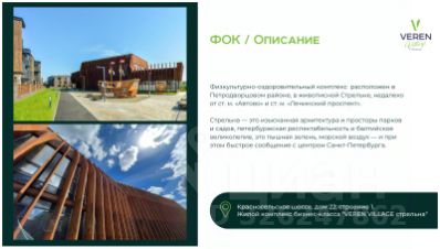 Объект расположен в отдельно стоящем 2-этажном здании на территории жилого комплекса бизнес-класса VEREN VILLAGE cтрельна. Дом сдан. Территория заселена.