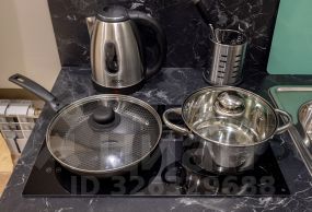 Техника: ТВ, плита индукционная, стиральная машина, холодильник, бойлер, фен, светильники- все новое .