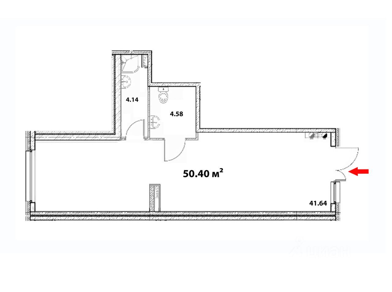 Метраж: 50.40 м²;