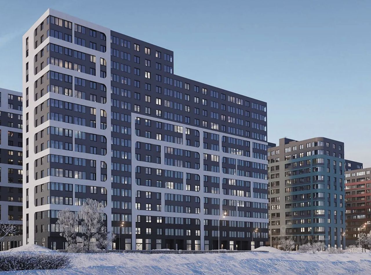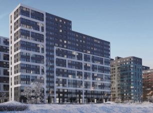 Большой многоэтажный современный жилой комплекс;
