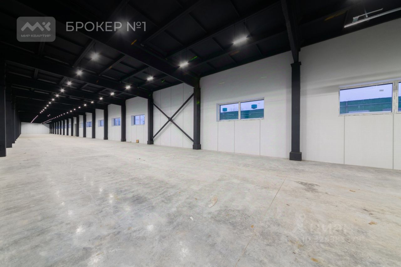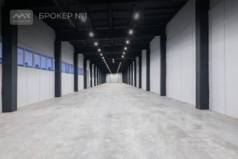 Ширина помещения 9м., длина 105м., высота потолка 5,5м., материал стен железобетонные сегменты, пол наливной. Есть ворота с подъемным механизмом, позволяющие подъехать и разгрузить фуру. Электричество 80 кВт.