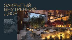- Благоустроенная территория с ресторанами и просторными террасами станет точкой притяжения для резидентов и гостей, подчёркивая статус проекта и создавая атмосферу престижного делового сообщества.