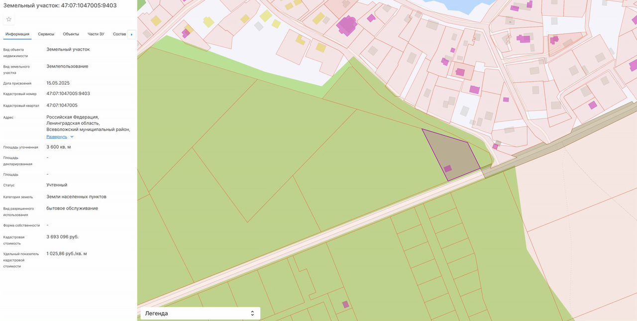 Кадастровый номер участка: 47:07:1047005:9403.
