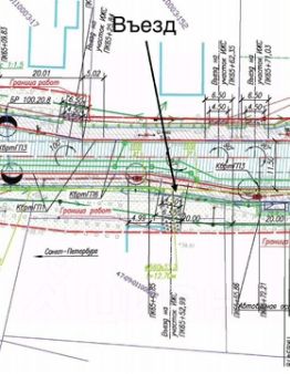 Первая линия Колтушского шоссе, с которого осуществляется официальный въезд на участок.