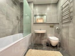 В студии совмещенный санузел, с современным и стильным ремонтом.