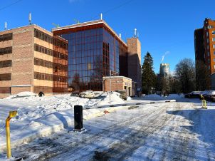 Территория парковки огорожена, выезд через шлагбаум.