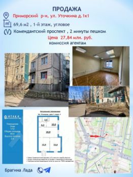 Помещение угловое площадью 69.6 кв. метров