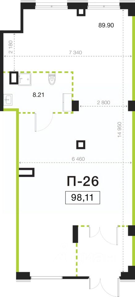 Помещение свободного назначения на 1 этаже, общая площадь 98.11 кв.м., высота потолков 4.05 м.Мощность подведенной линии электроснабжения 20 кВт. Стоимость помещения 63,869,610 руб., цена за кв.м 651,000 руб.