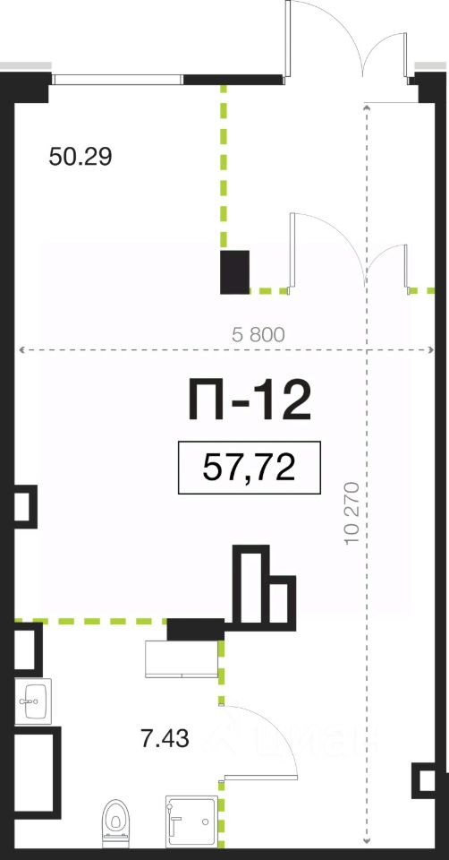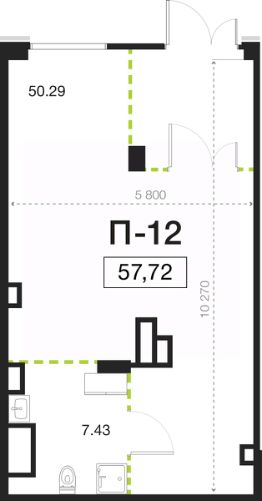 Помещение свободного назначения на 1 этаже, общая площадь 57.72 кв.м., высота потолков 4.05 м.Мощность подведенной линии электроснабжения 10 кВт. Стоимость помещения 34,545,420 руб., цена за кв.м 598,500 руб.