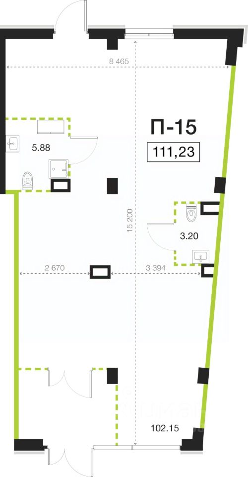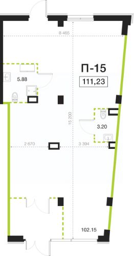 Помещение свободного назначения на 1 этаже, общая площадь 111.23 кв.м., высота потолков 4.05 м.Мощность подведенной линии электроснабжения 30 кВт. Стоимость помещения 47,709,328 руб., цена за кв.м 428,925 руб.
