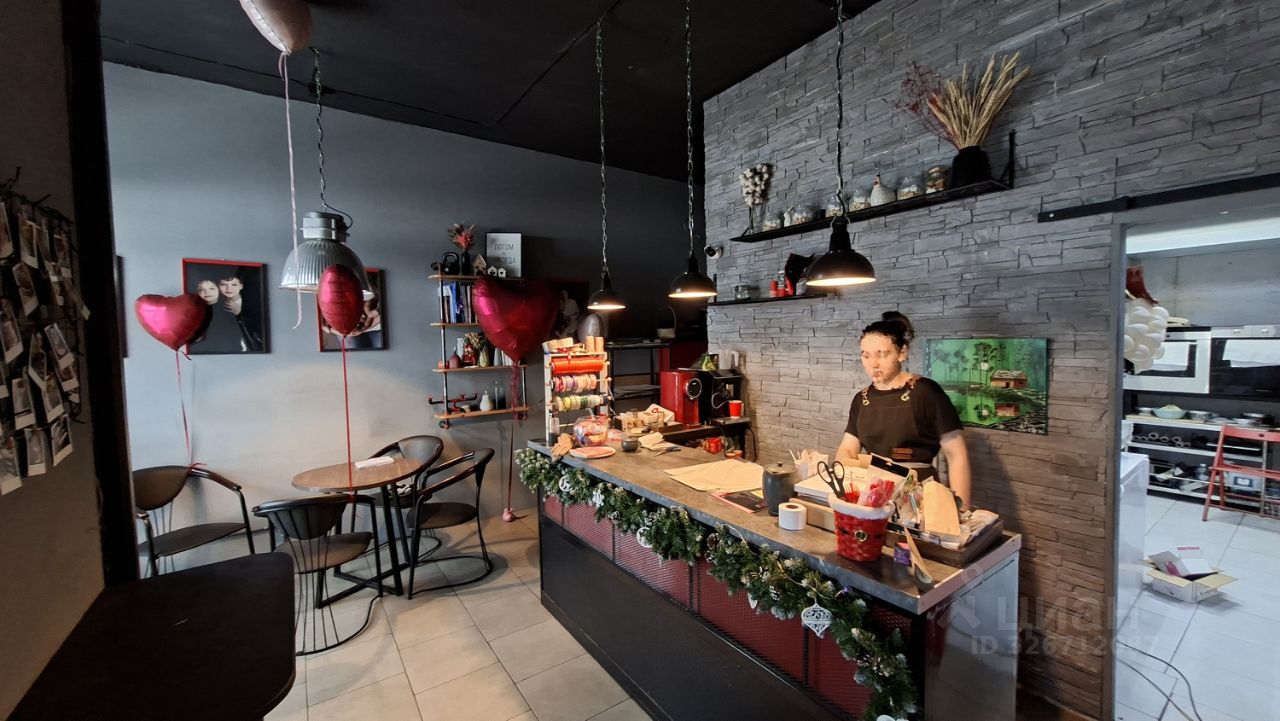 В помещении работает арендатор с действующим договором - кондитерская. Есть помещение для изготовления продукции и помещение для посетителей с прилавком и столиком. В клиентской зоне находится санузел.