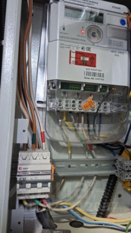 Электроснабжение - трёхфазное, на вводе установлен автомат на 32 А.