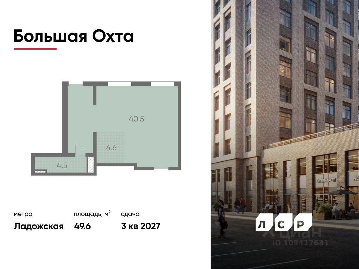 Продается помещение свободного назначения 49.60 кв. м в жилом комплексе бизнес-класса "Большая Охта" в Красногвардейском районе между улицами Якорной и Партизанской, в пяти минутах езды от Большеохтинского моста.