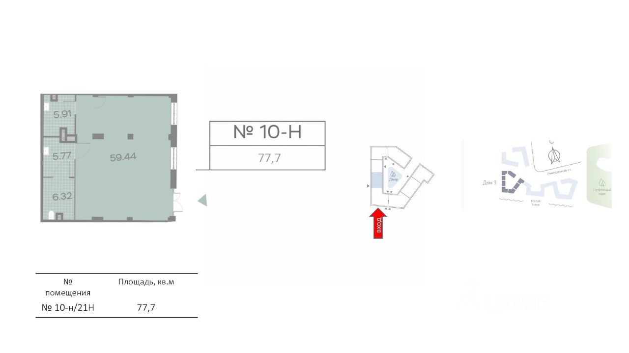 Продается помещение свободного назначения 77.70 кв. м в жилом комплексе элит-класса "Нева Резиденс" на Петровском острове.