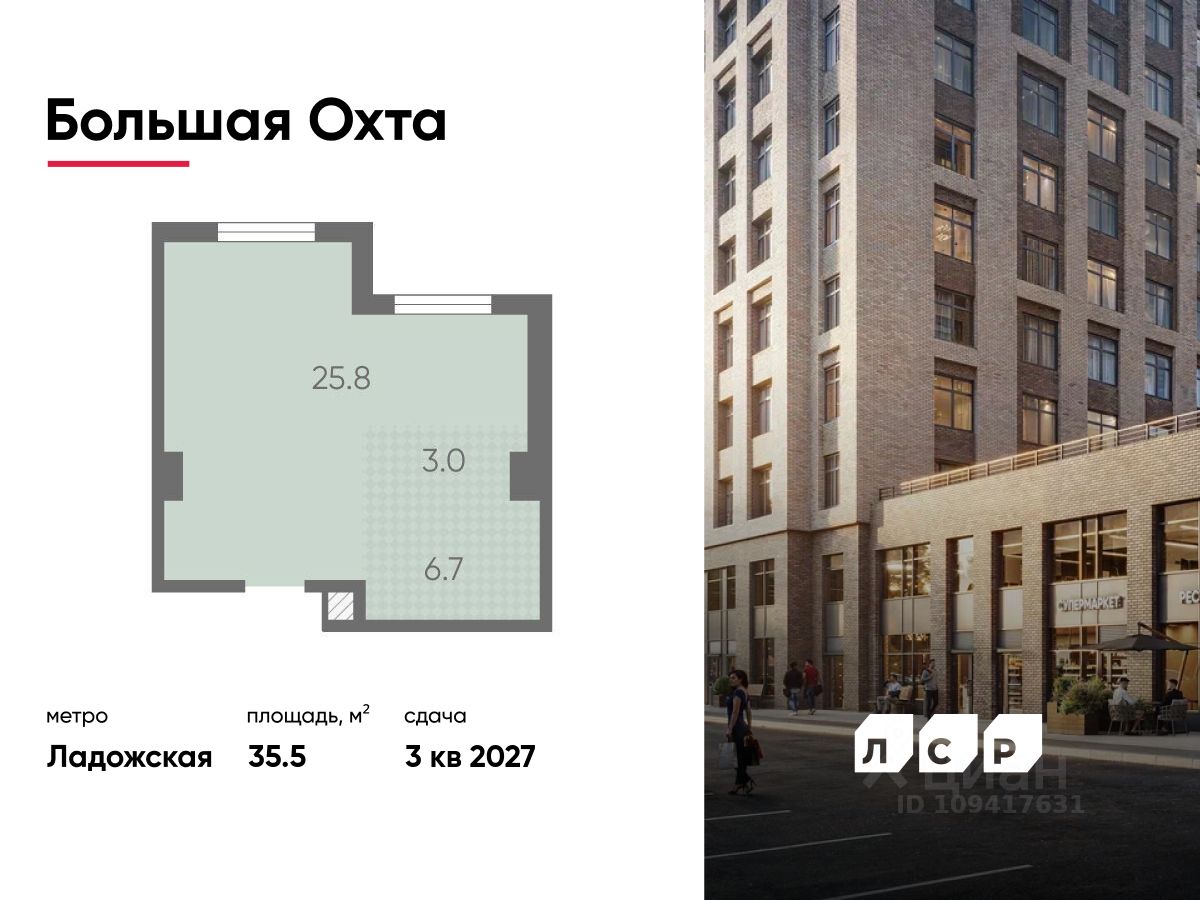 Продается помещение свободного назначения 35.50 кв. м в жилом комплексе бизнес-класса "Большая Охта" в Красногвардейском районе между улицами Якорной и Партизанской, в пяти минутах езды от Большеохтинского моста.