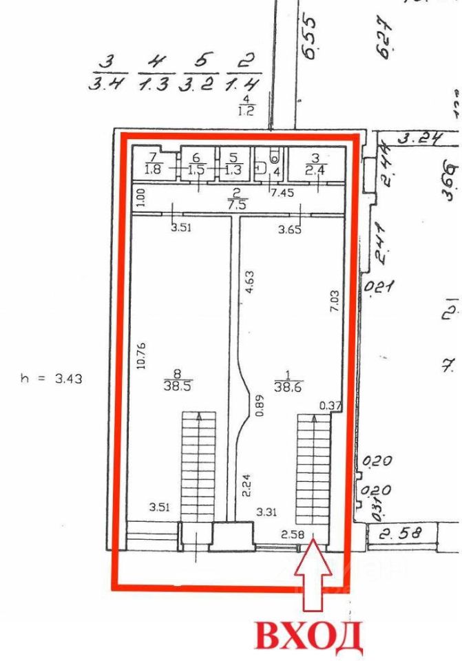 Высота потолков: 3,43 м.